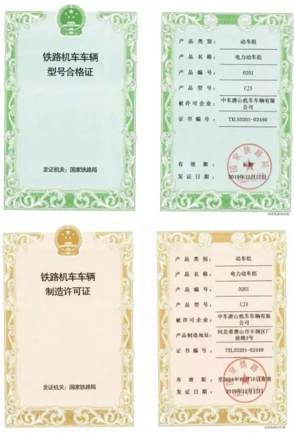 12月18日,中車唐山公司研制的CJ3型城際動車組獲得由國家鐵路局頒發(fā)的型號合格證和制造許可證,產(chǎn)品編號0201,標志著該型號動車組具備批量生產(chǎn)和上線運營的條件,將為我國城際交通網(wǎng)絡(luò)和打造1小時“都市圈”再添新利器。