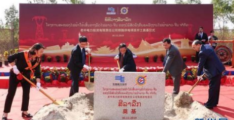 這是12月30日在老撾萬象拍攝的中老鐵路供電項目開工儀式。